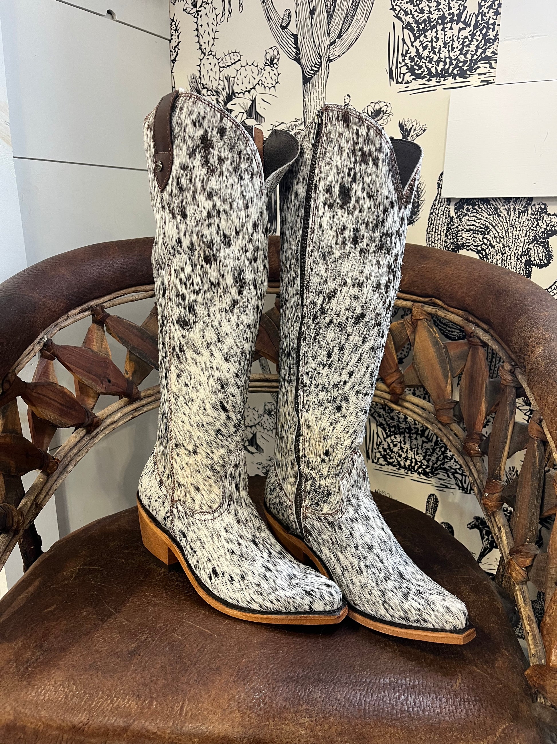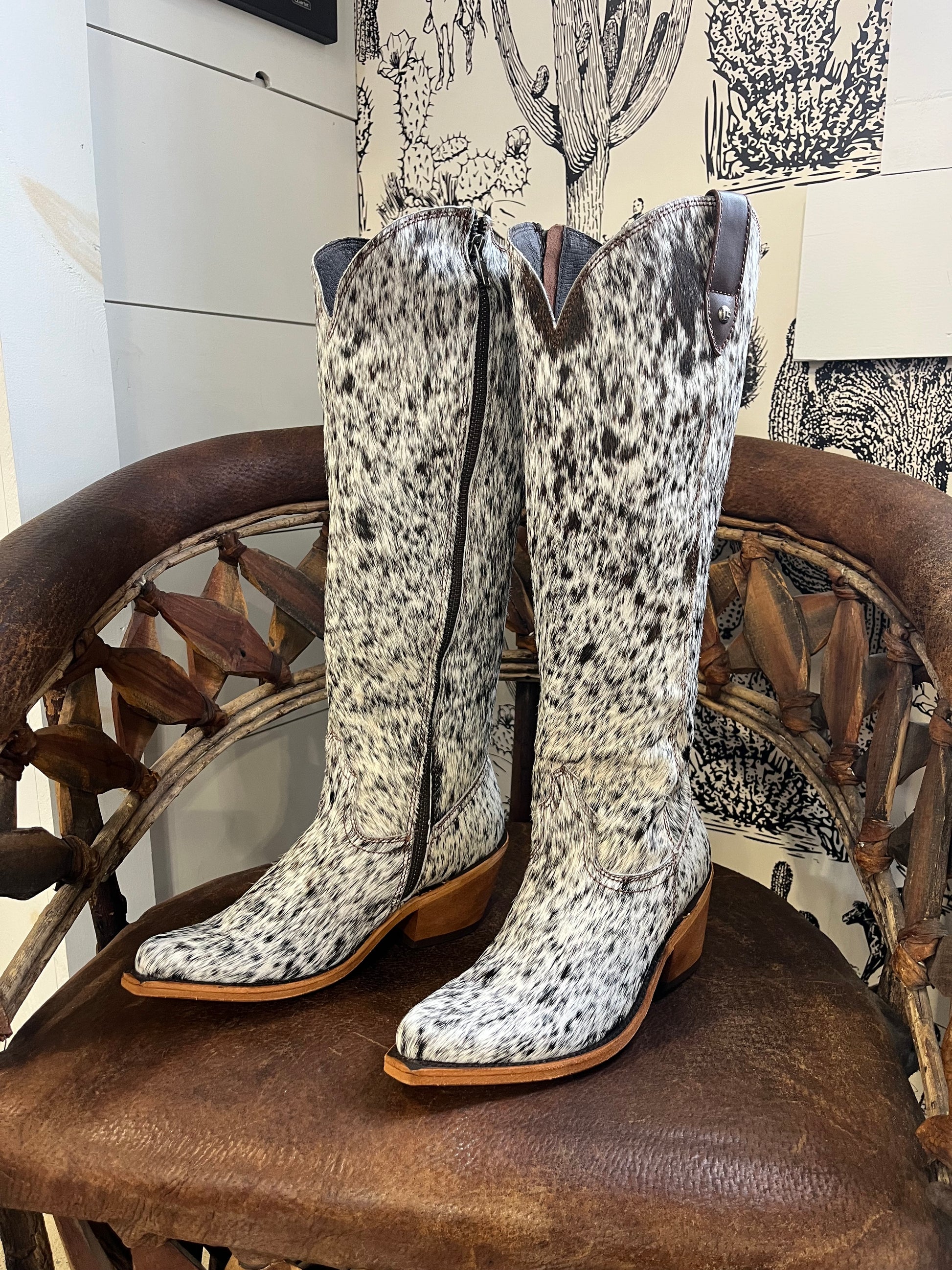 Meet the Granizo Cafe tall cowhide boot by Liberty Black! Handcrafted in Mexico using high quality genuine cowhide for the upper and leather for the outsole - these boots are the epitome of stunning and high quality. The makers of these boots do an impeccable job of matching the hides on each foot, and they are sure to be the statement piece of any outfit. But the best part? A full zipper along the length of the shaft for easy entry - even for those with a high instep. Liberty Black sure knew what they were doing when they designed these! We love that they are inclusive - available in both a standard calf and footbed width, as well as a wide calf and footbed width.