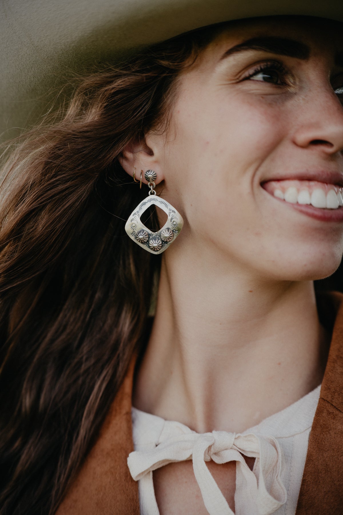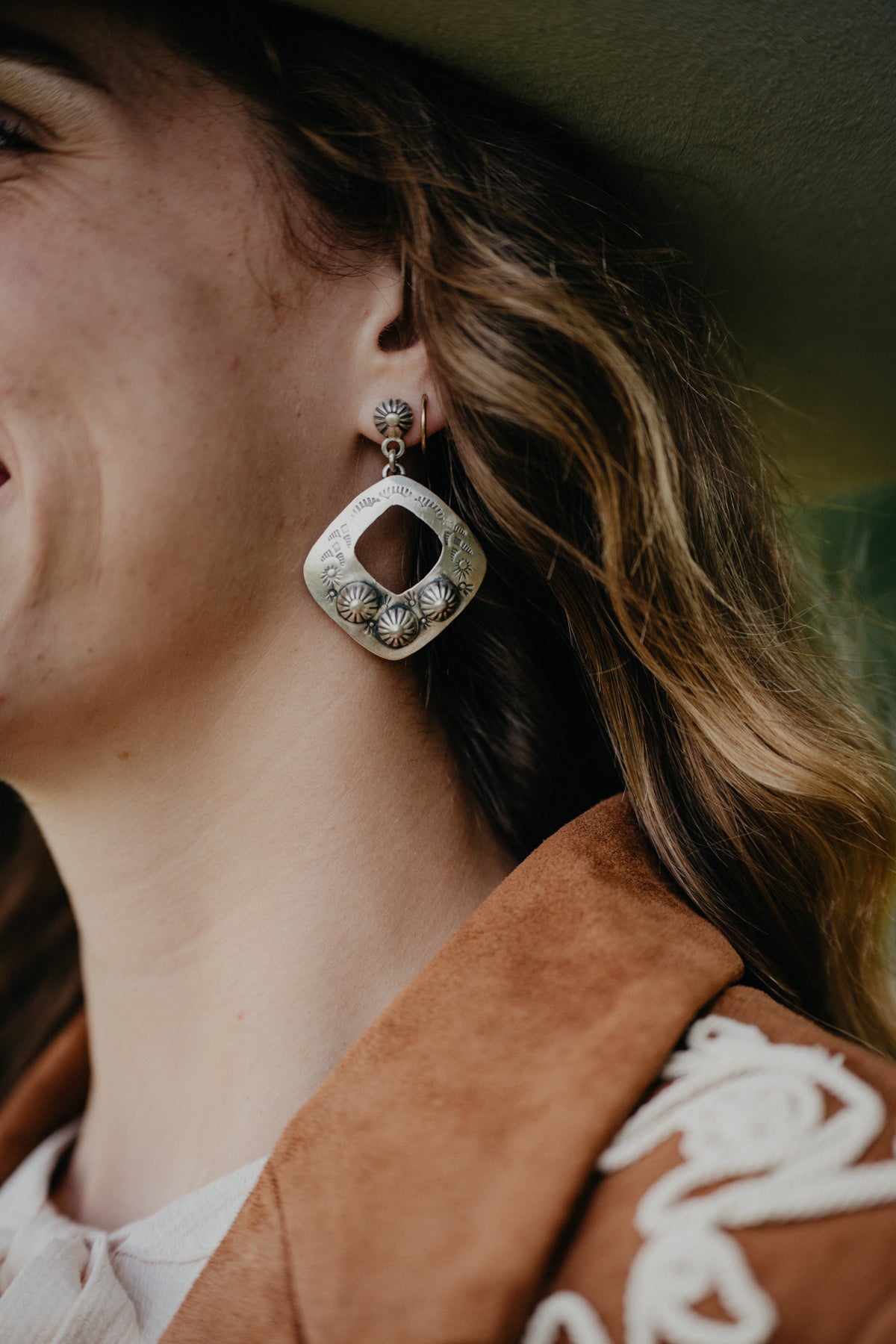 Add some shine to your look with our Stamped Sterling Silver Earrings. The Dangle Diamond is classy and sophisticated giving off some playful movement. These are the perfect size and light enough for easy wear.