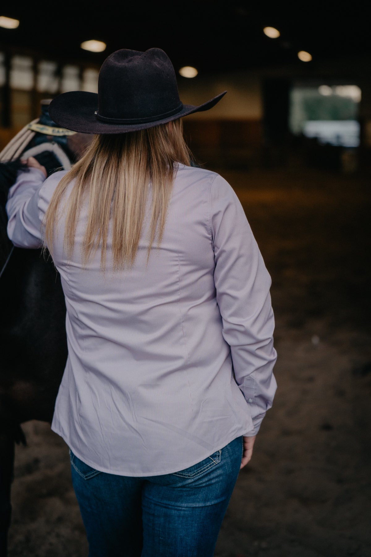 Get ready to ride in style with our 'Tanya' CINCH button up! Made from a soft Tencel blend, this button-down CINCH shirt keeps you cool and dry with its breathable, sweat-wicking fabric. Durable enough to keep up with your busy day, its subtle mauve and white stripes add a playful touch to your look. Whether you're in the saddle or on the go, this shirt works just as hard as you do!