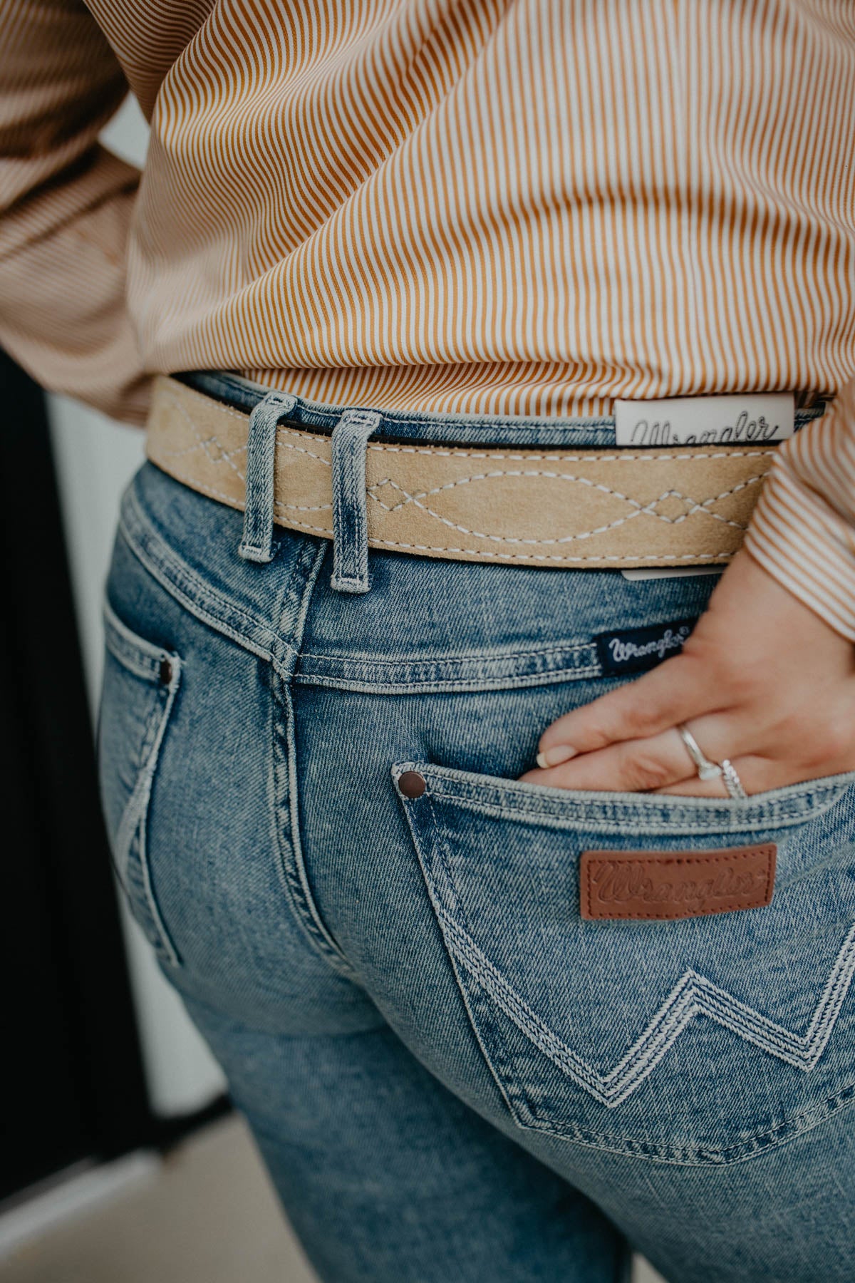 Adding to our offering of Double J Texas handcrafted belts with this simplistic and sophisticated sand brown suede belt with figure 8 stitching and a silver coloured buckle and keeper. The leather quality will have you swooning - this is undoubtably a belt you will still be wearing proudly years to come!