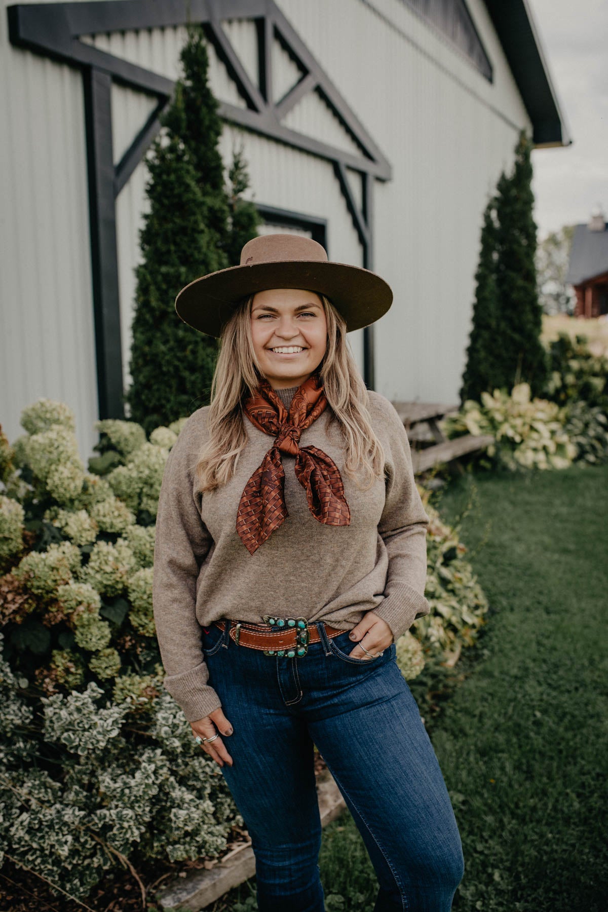 Add warmth and style to your western wardrobe with this stunning genuine silk wild rag 34.5 x 34.5
