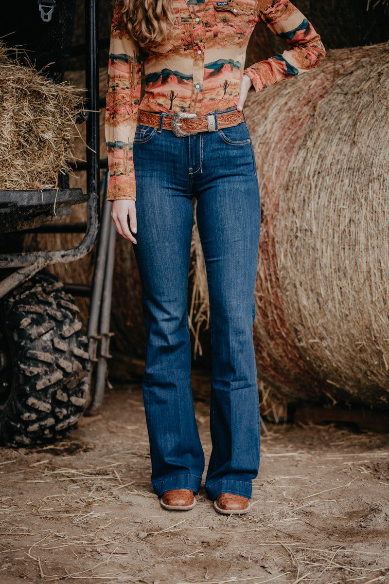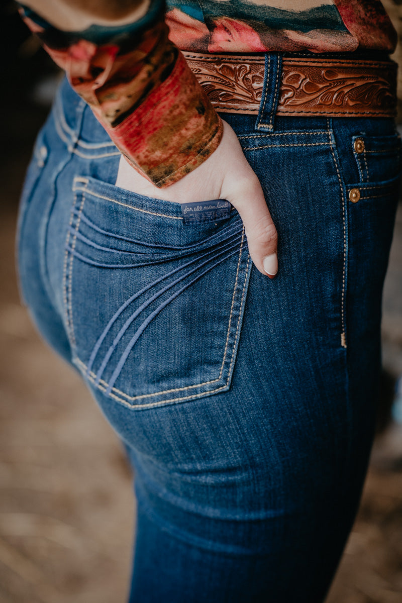 Discover the ultimate comfort-meets-style with our beloved 7FMK Dojo trousers in a gorgeous dark wash. These buttery soft, stretchy trousers feel nothing like traditional denim—slip them on and you'll understand why our team lives in them. Featuring a flattering medium-high waisted flare silhouette with a cuff, they're designed with a slimming fit through the hips and thighs for an impeccable shape. The 36" long inseam is perfect for everyday wear or wearing in the saddle. Exceptional quality and timeless style make these Dojos an instant wardrobe essential you'll reach for again and again.
