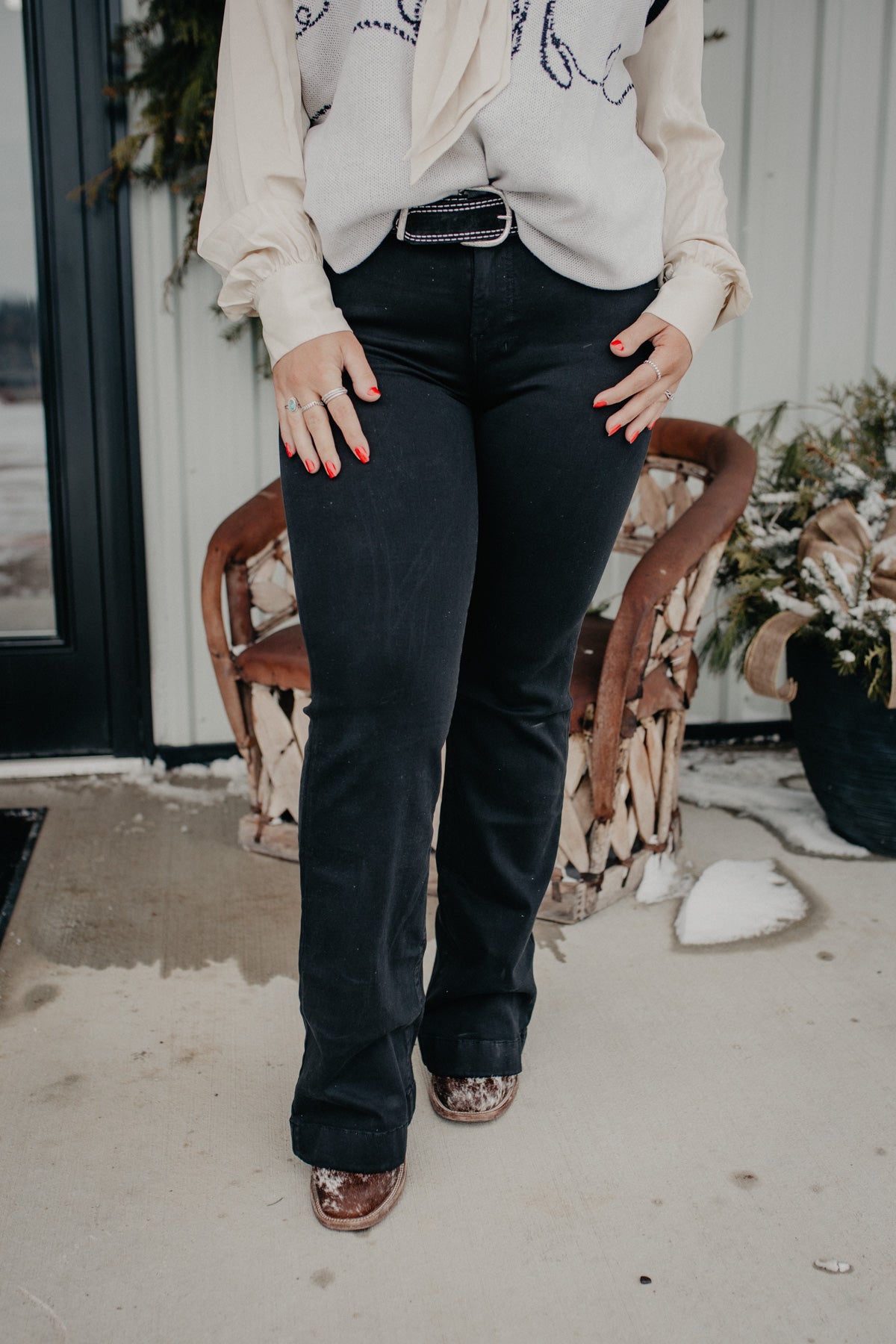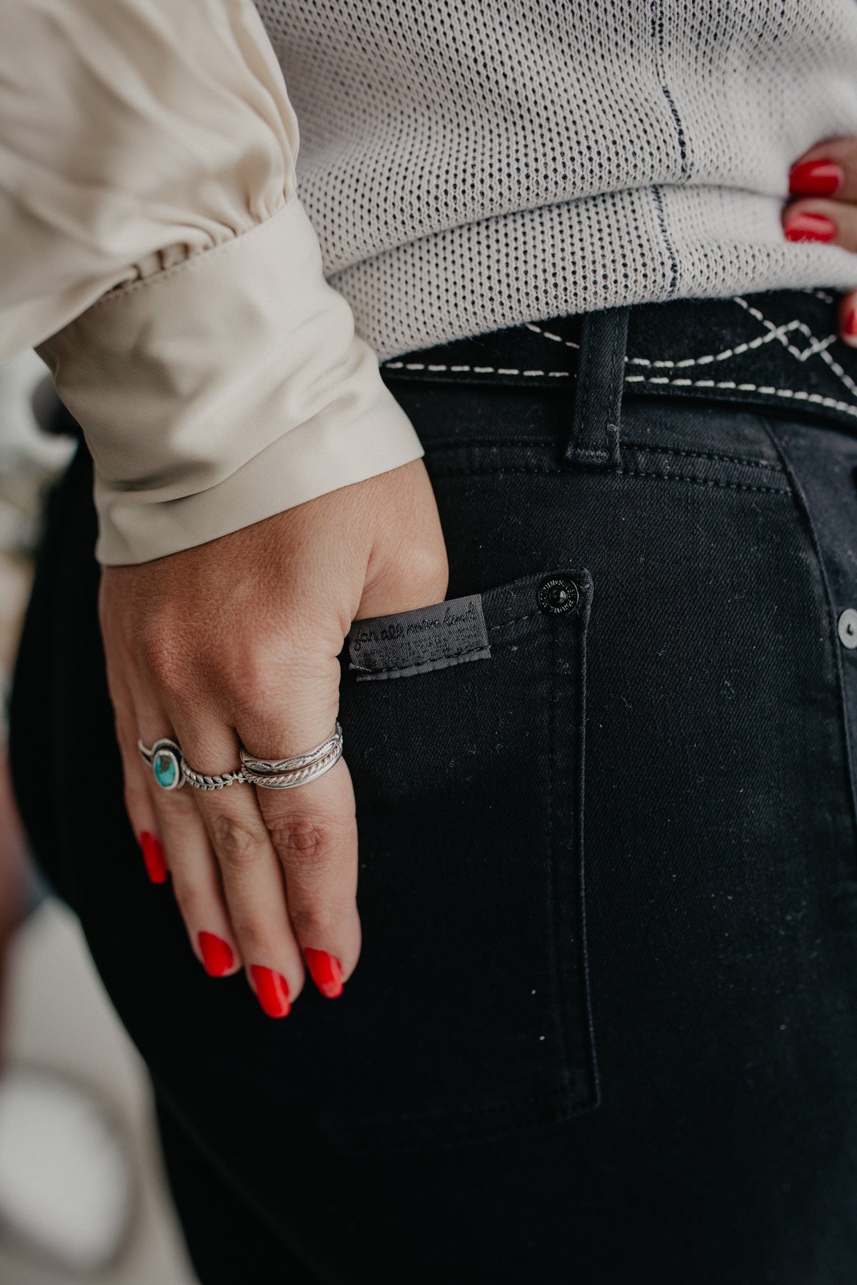 Embrace ultimate stretch and comfort with the 'Tunisia' Black Dojo by 7 For All Mankind. This classic dojo style trouser is perfectly altered to flatter your figure, featuring a slim fit through the thigh and a flared trouser leg with a 2" cuff leg opening. The luxurious stretch denim in a stunning black solid colour and plain pockets make this piece a must-have in your wardrobe. Featuring that always amazing perfect rise, these are a trouser to dress up for work or great in the showring too!