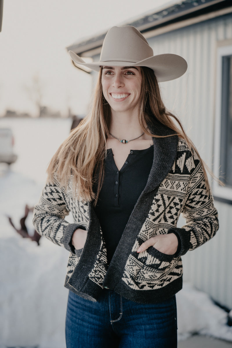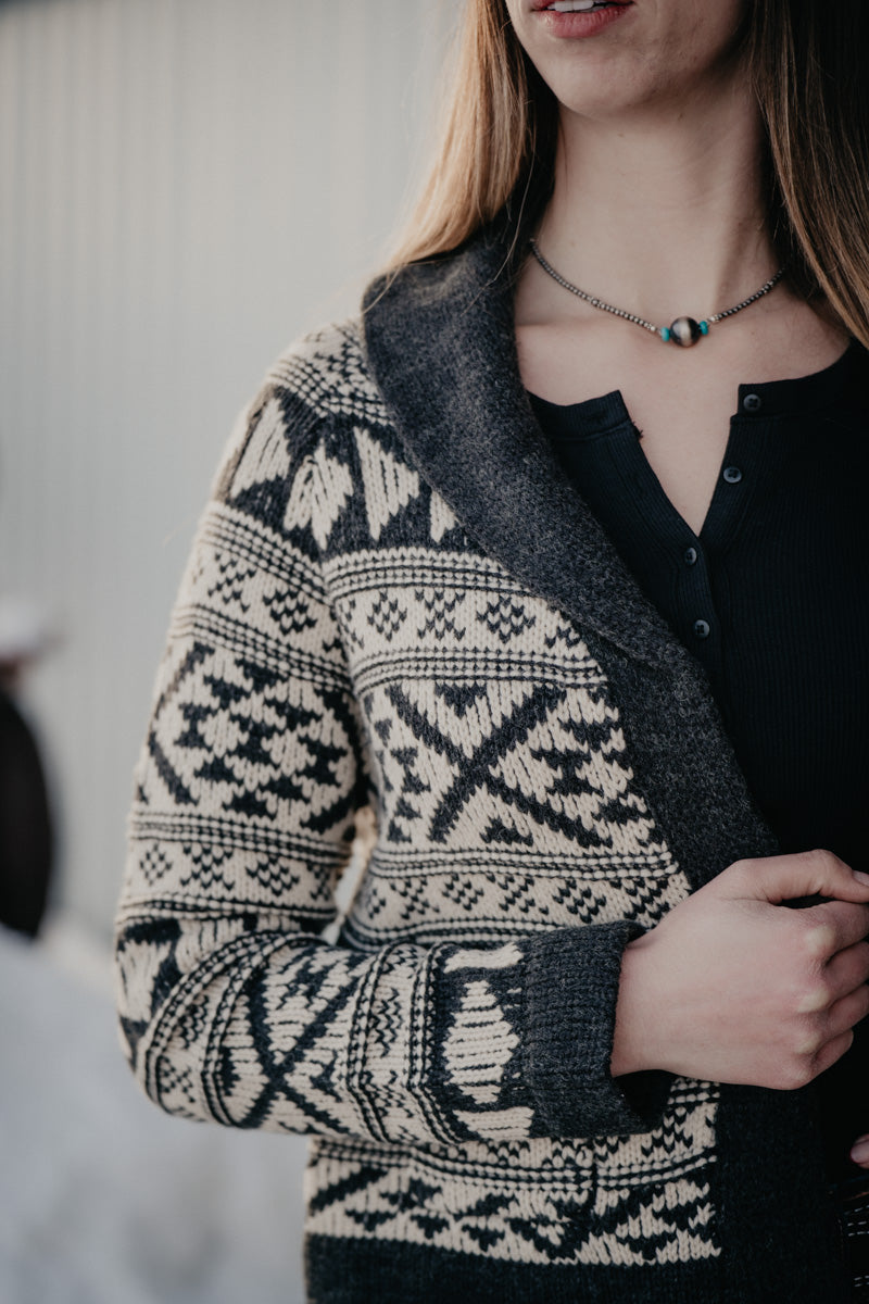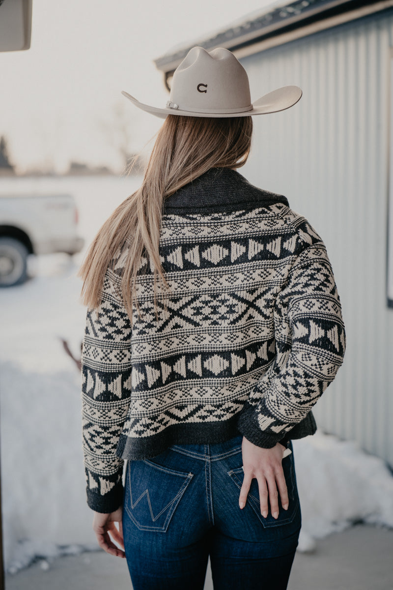 'Violet' Women's Cropped Grey/Ivory Aztec Cardigan by Stetson (XS-XL)