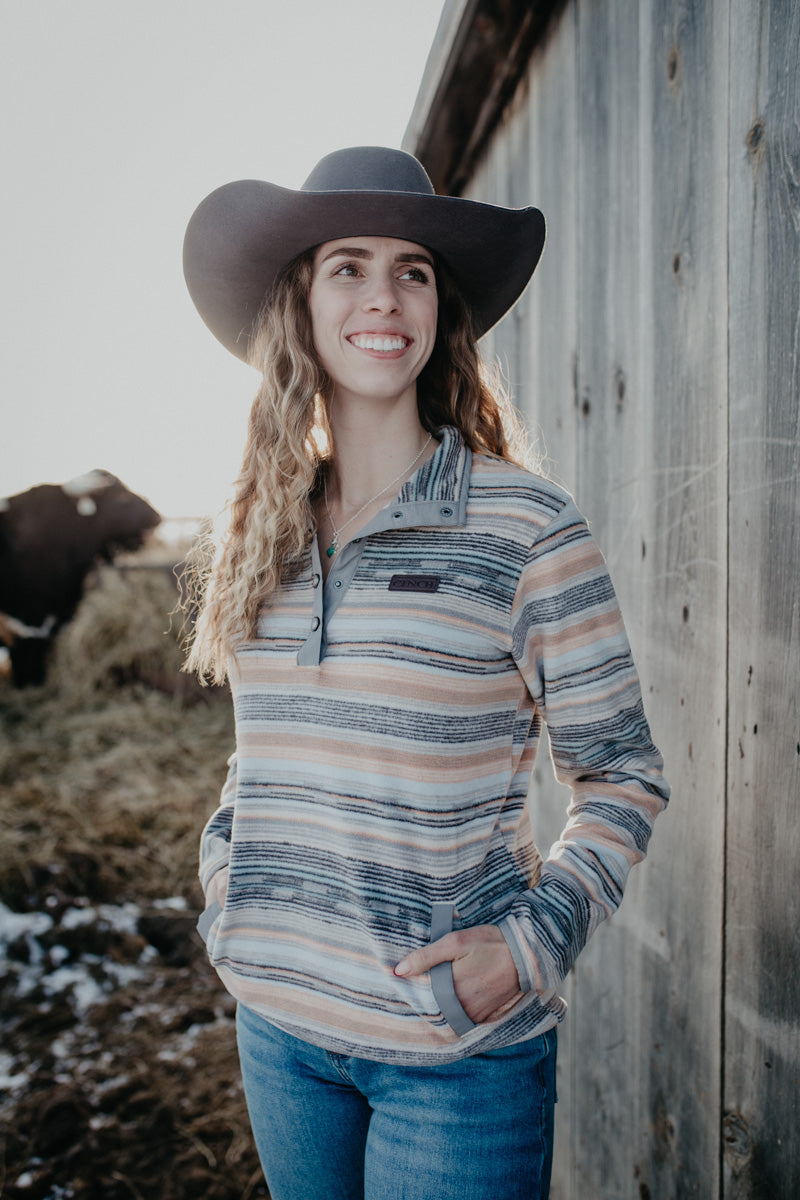 'Phoebs' Women's CINCH Peach & Grey Striped Fleece Pullover (XS - XXL)