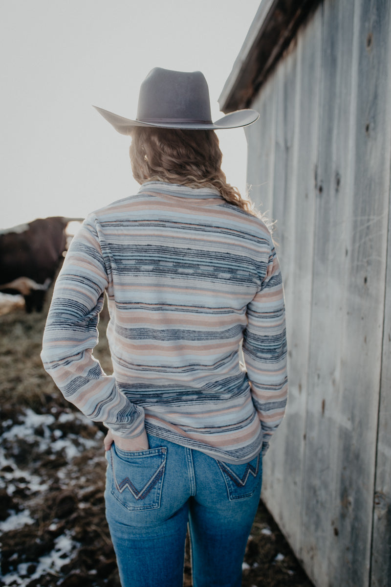 It really doesn't get any better than CINCH fleece pullovers - they are a sell out each season! They are the ultimate in warmth and coziness - without the bulk! The quality is impeccable - these are something you will live in week after week, year after year, and they wash SO well! Featuring a fabulous fit, pockets, and gorgeous trim and button detail! We love the peach and grey stripe print on this cream version! This sweater is a must add to your fall collection!