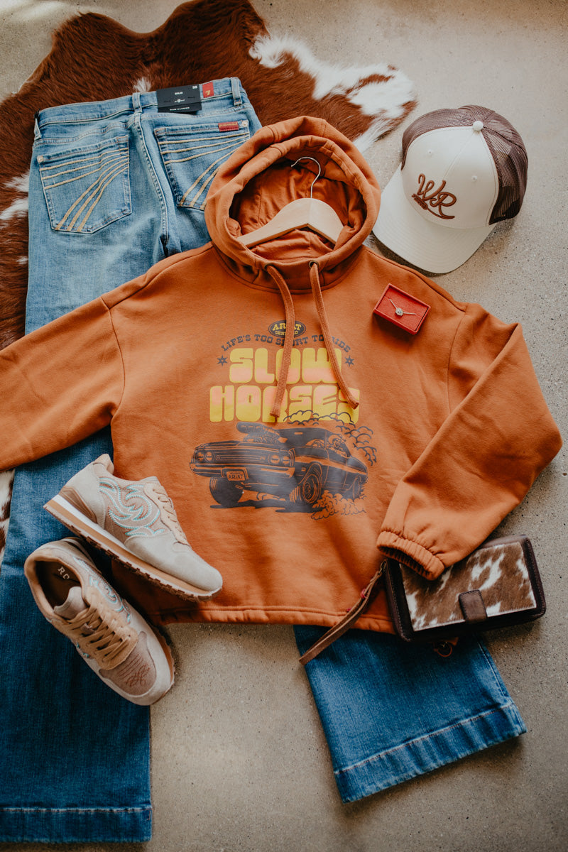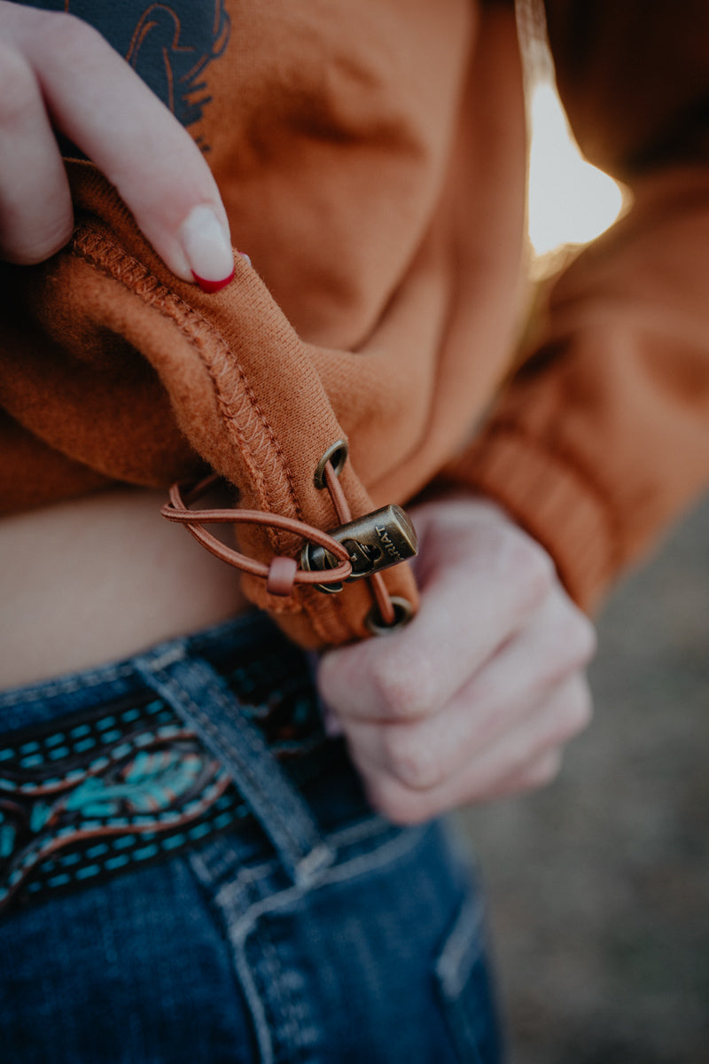 It's hoodie season and this 'Sandi' Woman's Slow Horses Sendero Hoodie is a perfect addition to your collection this fall! This beautiful sweater comes from the Ariat's 'Sendero' collection. With a drawstring hood, draw cord hem and elastic cuffs, this hoodie is ready to keep you warm all fall long!