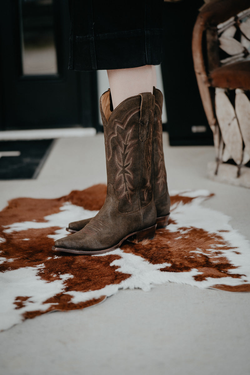 Step into Western style with these Women's Stetson Snip Toe boots that blend timeless charm with modern flair! Crafted from supple suede leather in a rich chocolate brown with subtle green undertones, these beauties feature eye-catching copper stitching that adds personality to every step! The signature snip toe silhouette keeps things sleek and sophisticated, while the durable leather sole ensures comfort for all-day wear. Perfect for rodeos, country nights, or anyone who loves a boot with character!