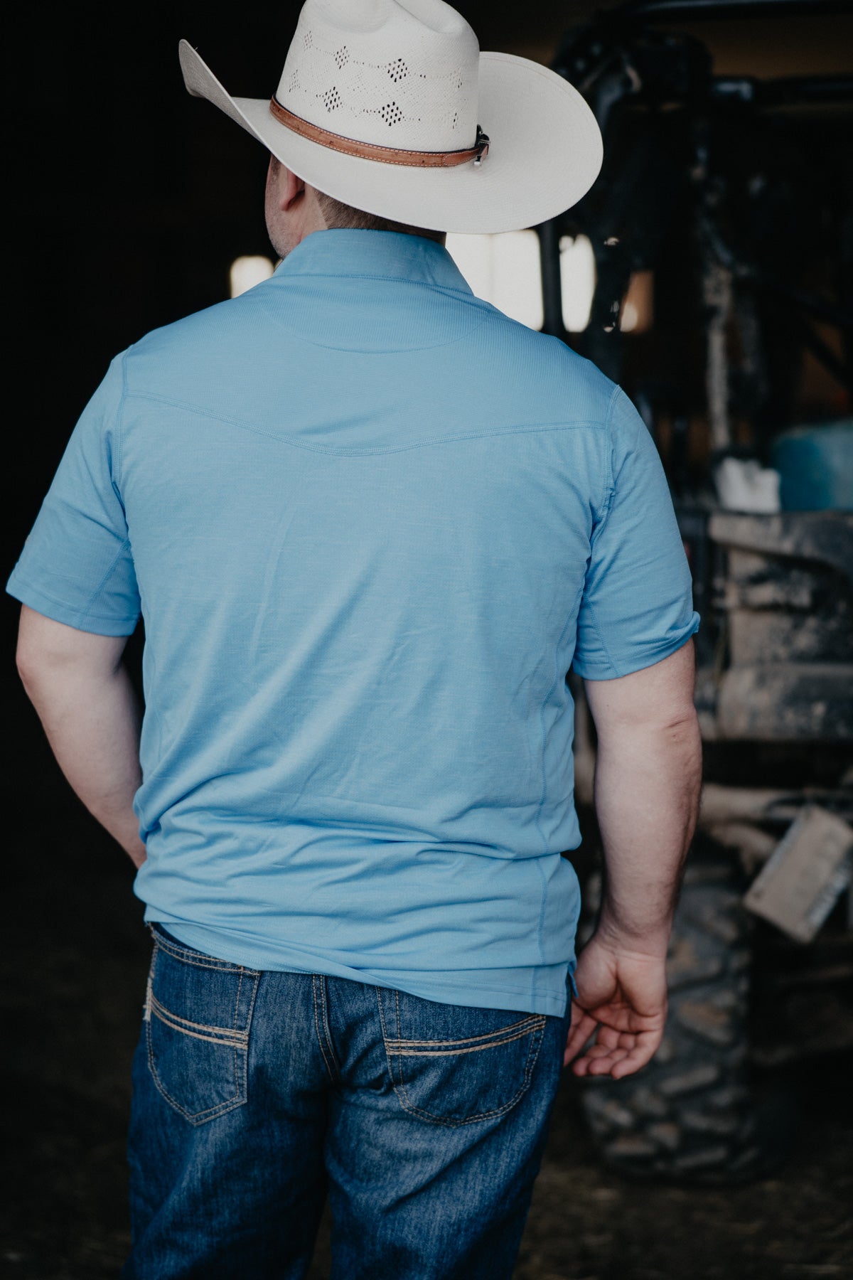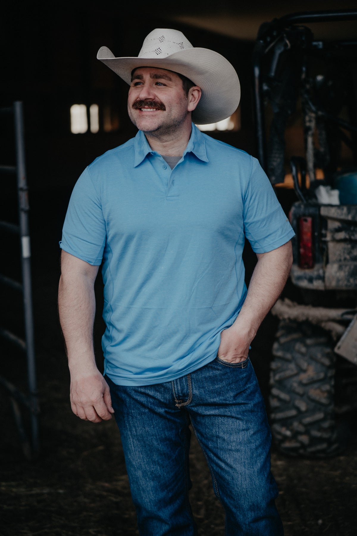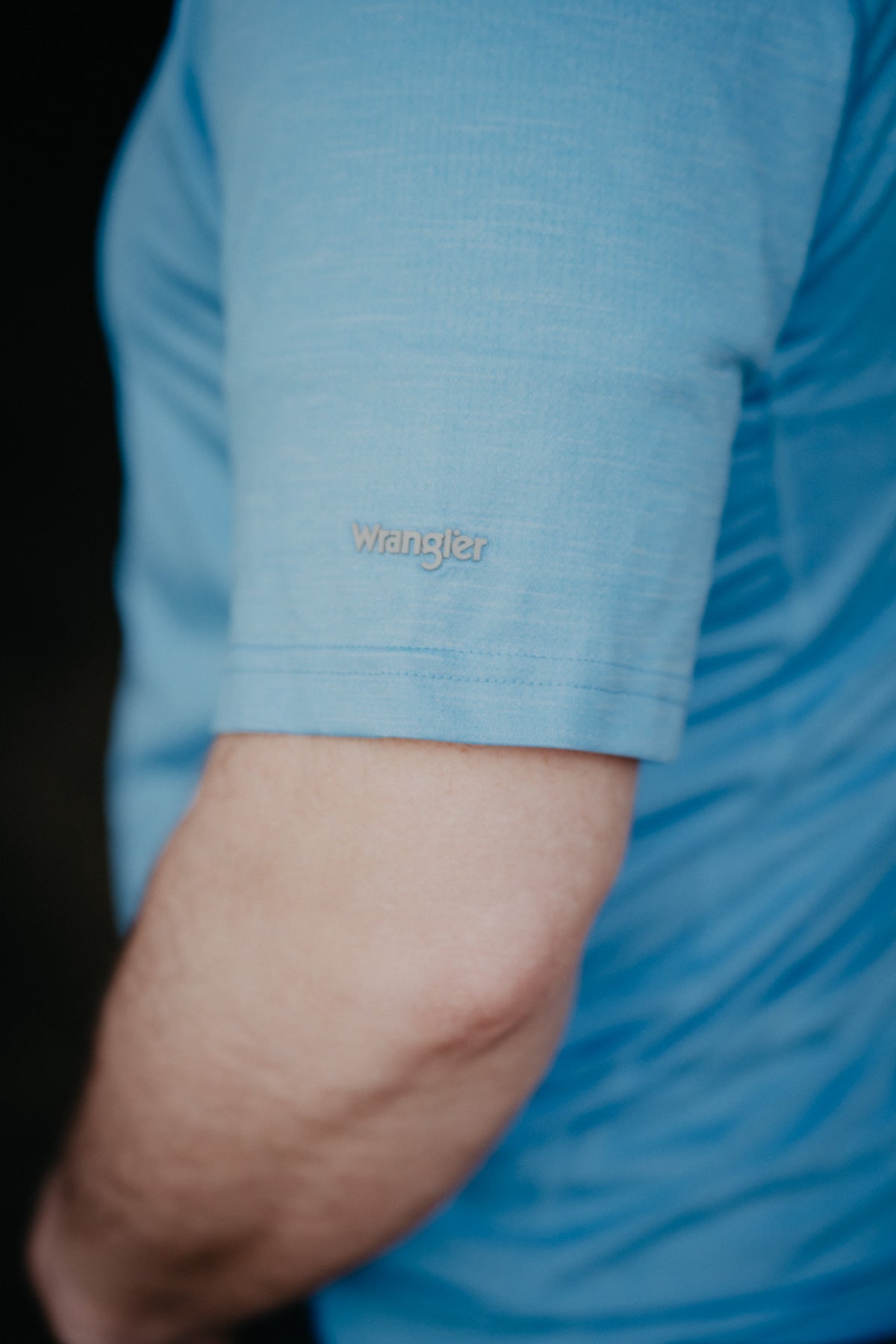 Golf to office, rodeo to barn - this polo from Wrangler has you covered! Classic blue with simple design, this shirt is timeless and something every guy needs in his closet!