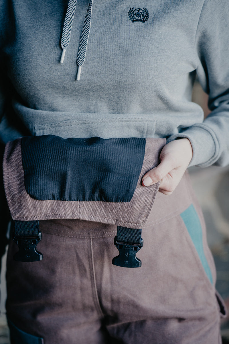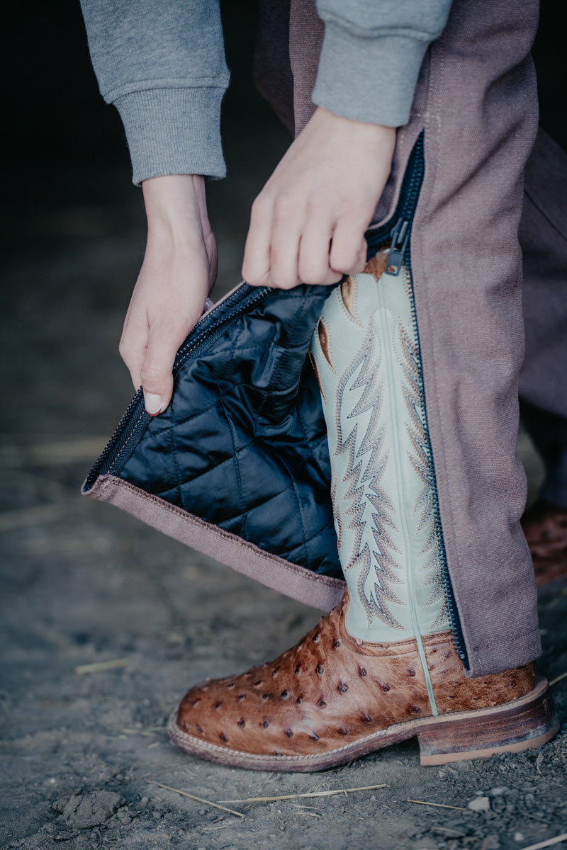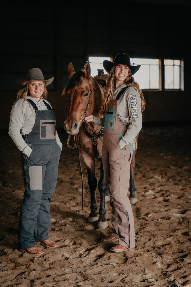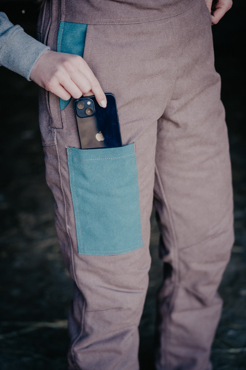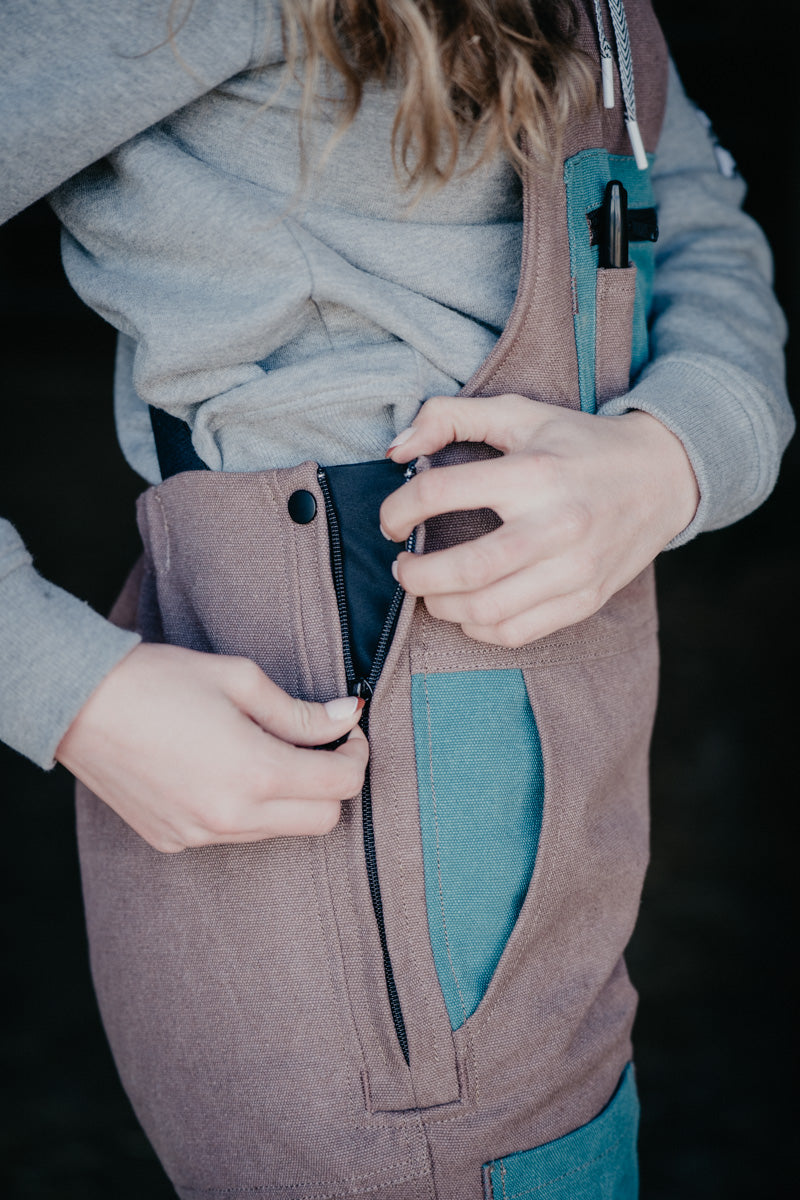 Saddle up in style with these turquoise sand insulated overalls from Durnin Farm and Ranch Wear—a women-owned Ontario brand crafting workwear that actually works. Designed with the barn, field, and trail in mind, these western-inspired bibs feature zippered legs that slide right over your boots, plus a flattering fit that hugs your waist while giving your hips room to breathe. Stay toasty with 140 grams of quilted polyester lining that keeps the warmth in without the bulk. Packed with practical pockets (thigh cell phone pocket, dual bum pockets, zippered chest with syringe holders, pen pocket, and front pockets), plus a hammer loop for good measure. Heavy-duty side zips make getting dressed a breeze, while elastic straps and premium buckles keep everything secure while you work!